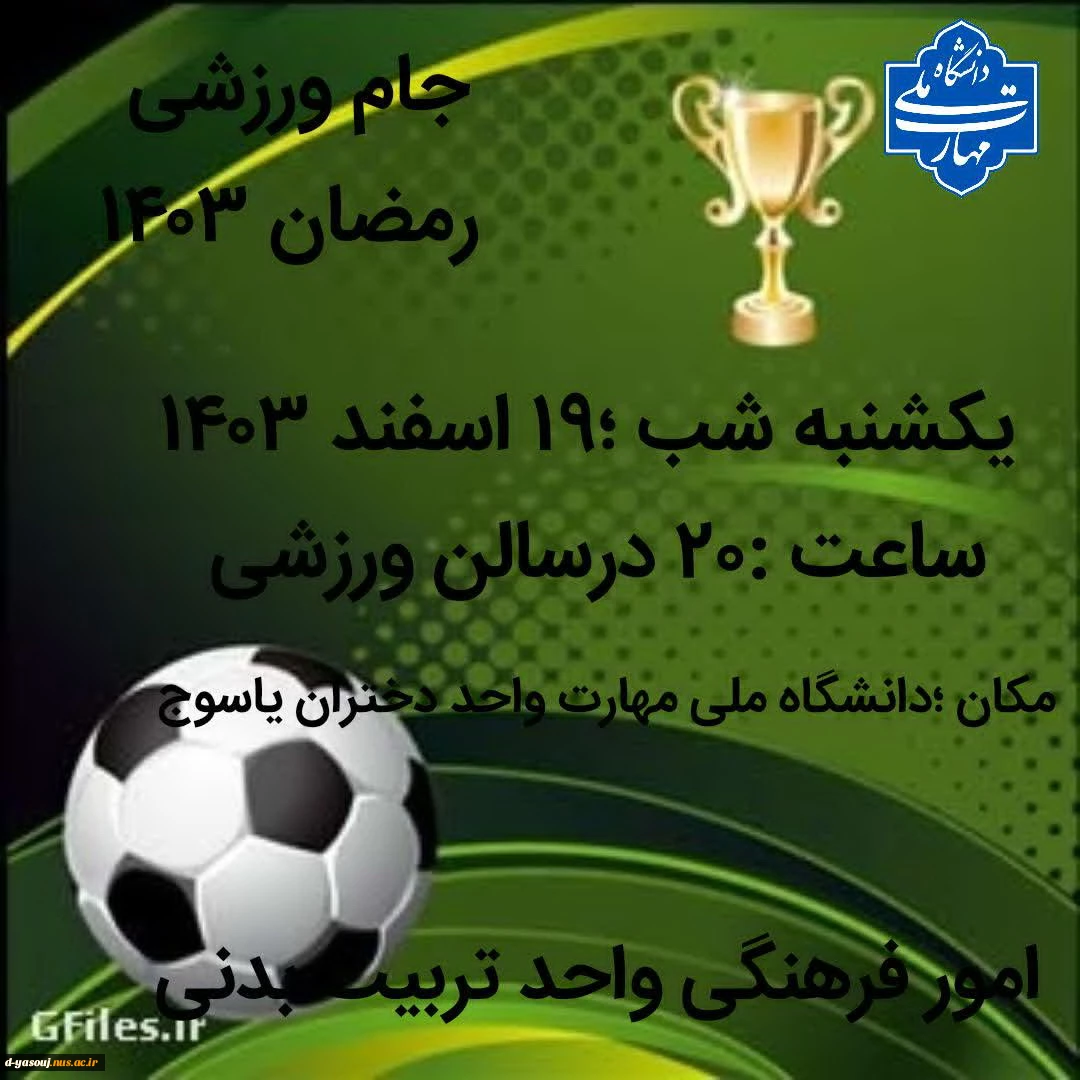 امتیاز دهید : برگزاری جام ورزشی رمضان دانشگاه ملی مهارت دختران یاسوج 2 دوشنبه 20 اسفند 1403 ساعت 22:12